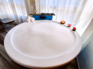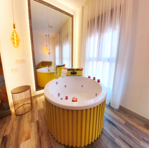 Nuestras habitaciones cuentan con bañera de hidromasaje para que puedas relajarte después de un día de exploración. Disfruta de un lujo sin igual en tu propia habitación con jacuzzi, una característica que distingue a Reina Victoria Prado Sastre como el alojamiento ideal en Alicante.